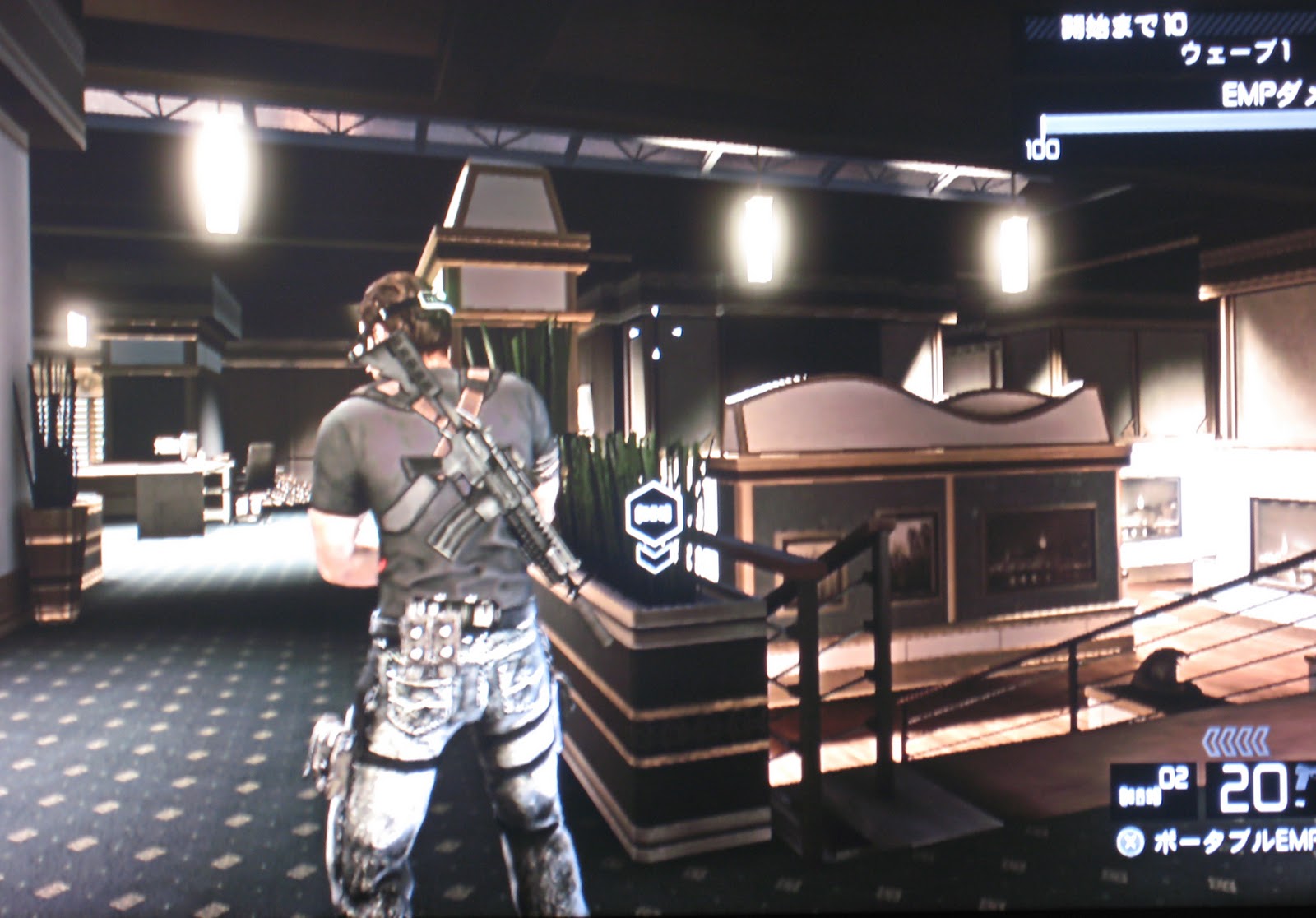 浴場2 | ★☆☆ | EMPのある建造物の屋根にてサイレンサー銃で応戦。 発見されたらポータブルEMPで敵のターゲットをリセット。 |
